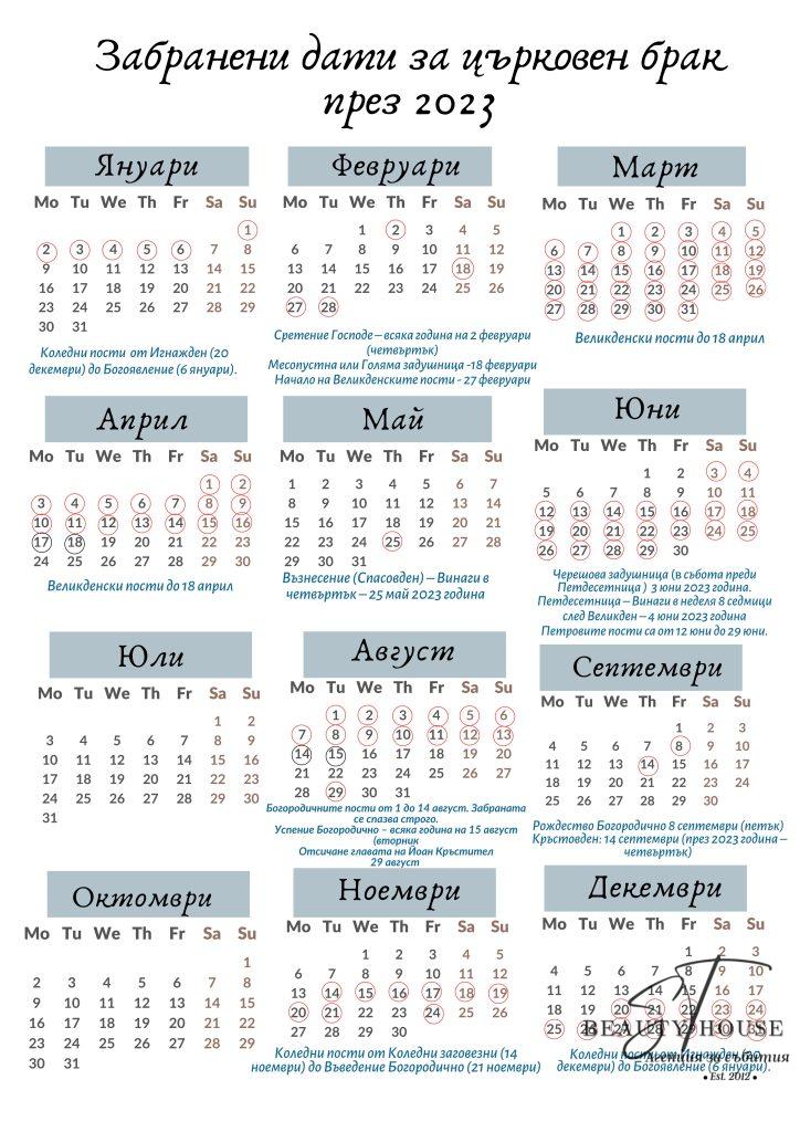 Забранени дати за църковен брак през 2023 година